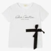 Eye-catching blue top for girls by Agatha Ruiz de la Prada, made in soft cotton jersey. This long-sleeved top is patterned with a multicoloured floral print with pink button fastenings on the front for a fun finish. It is lightly gathered and has lightly elasticated cuffs to create a feminine silhouette.
