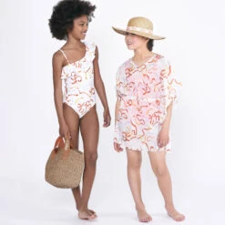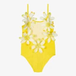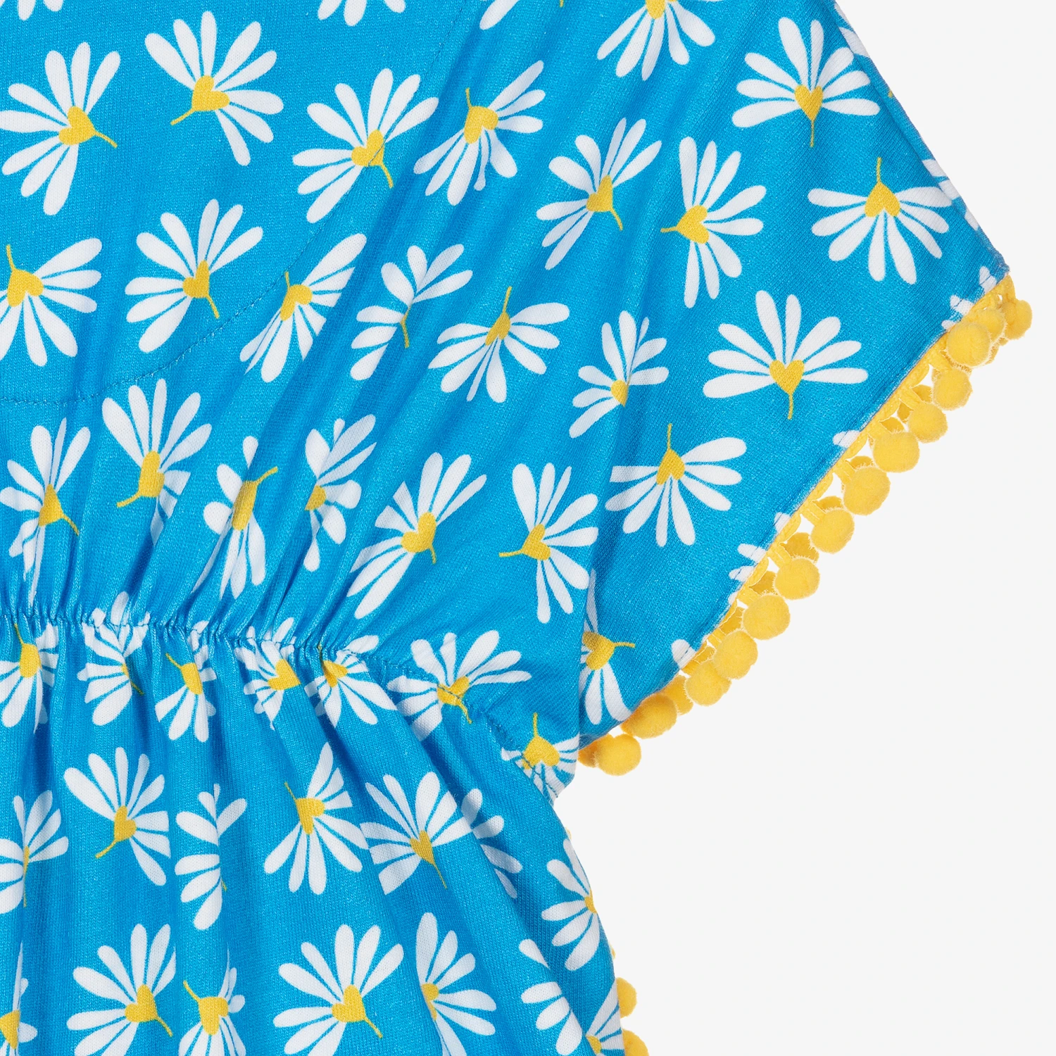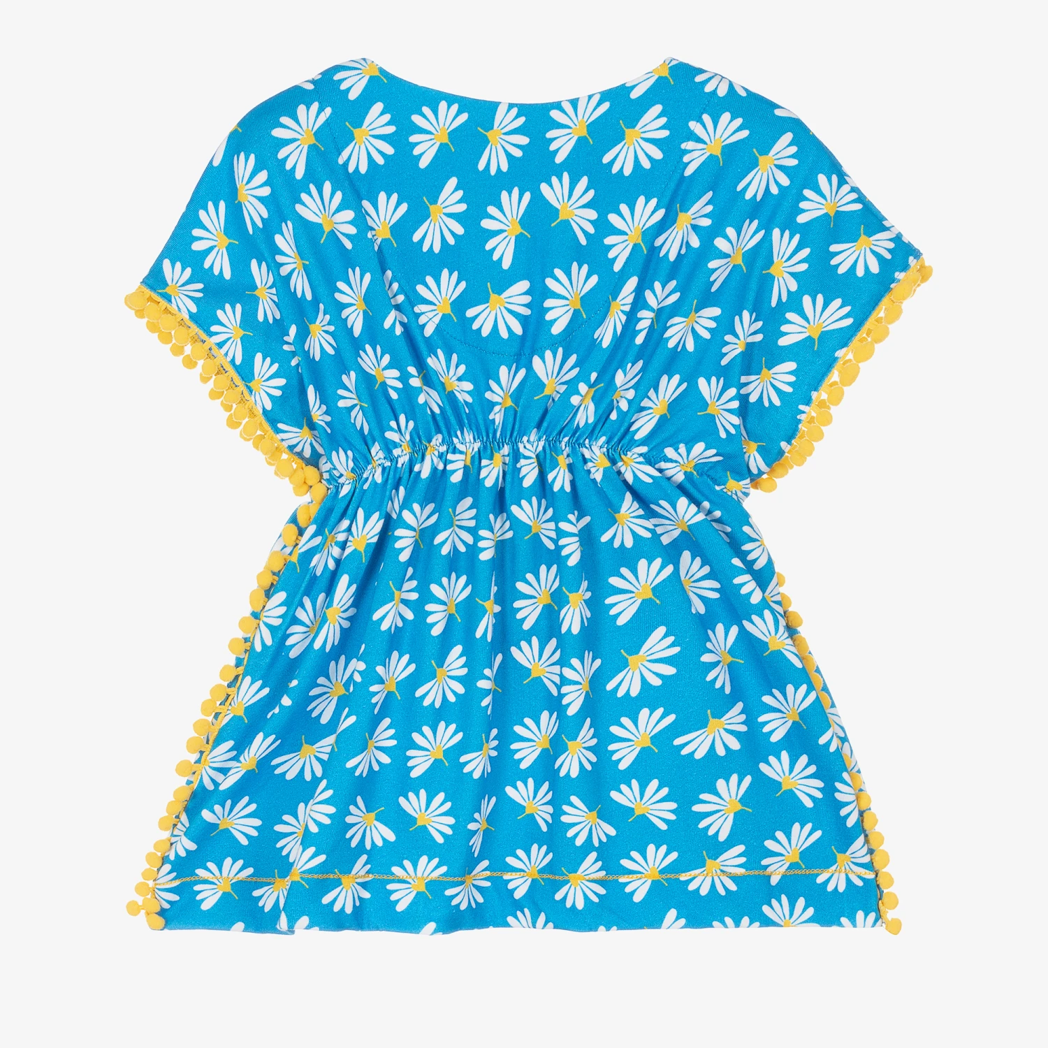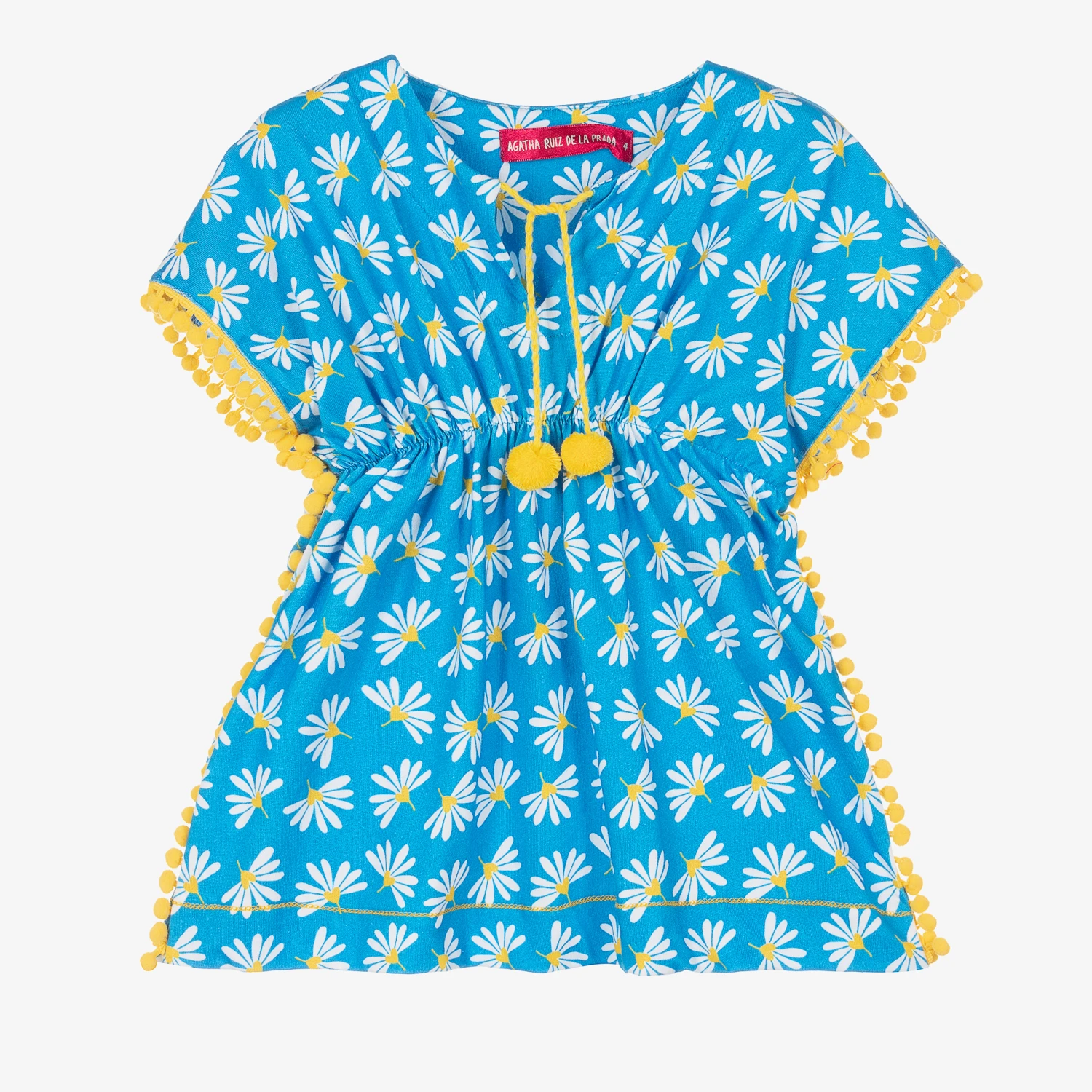 Ideal to wear at the beach, this fun cotton kaftan for girls is by Agatha Ruiz de la Prada. Made in soft and stretchy jersey, it is patterned in a white and yellow floral print with pretty yellow pom-pom trims. The elasticated waist gives it a stylish, feminine silhouette and a comfortable fit, while the pom-pom tie gives a fun, playful finish.