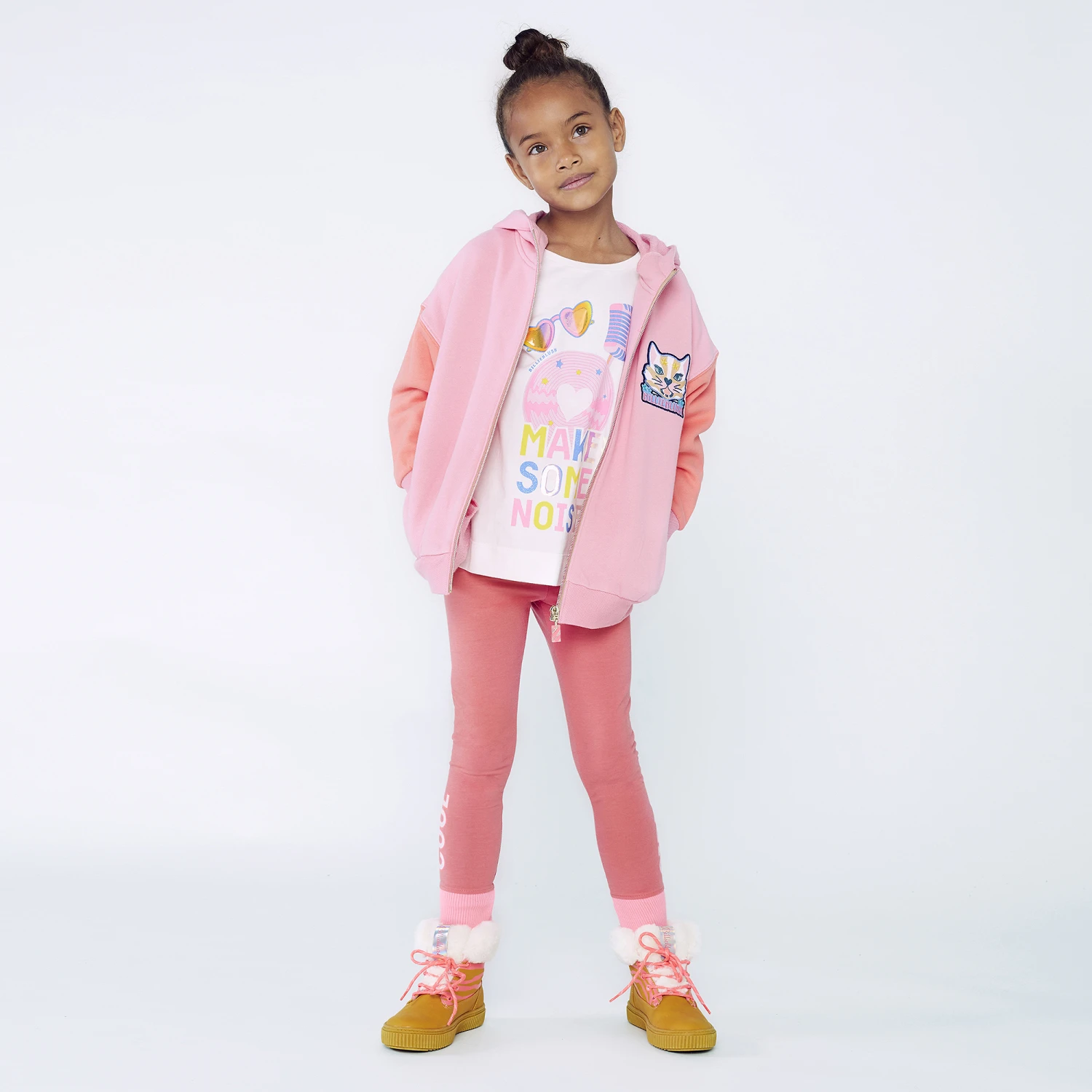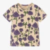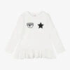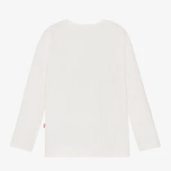 Ivory cotton top for girls by Billieblush. Made in soft and stretchy jersey, there is a pink, blue and yellow music-themed print on the front, with glitter accents and shimmering iridescent foil details.