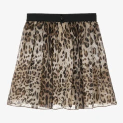 Brown, black and beige skirt for girls by Italian luxury designer Dolce & Gabbana, designed in an iconic leopard print. Crafted from luxurious and lightweight silk, this floaty skirt is fitted with an elasticated black waistband with the designer’s name incorporated into the weave. There is a concealed zip fastening on the back and a gold, viscose satin lining for superior comfort.
