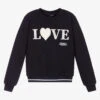 Cropped black sweatshirt for girls by Elle, with a pink logo and white printed dot pattern on the front. For comfortable, easy-to-wear style, it is made in cotton blend jersey with a cosy fleece feel inside, and has ribbing on the crew neck, cuffs and hem.