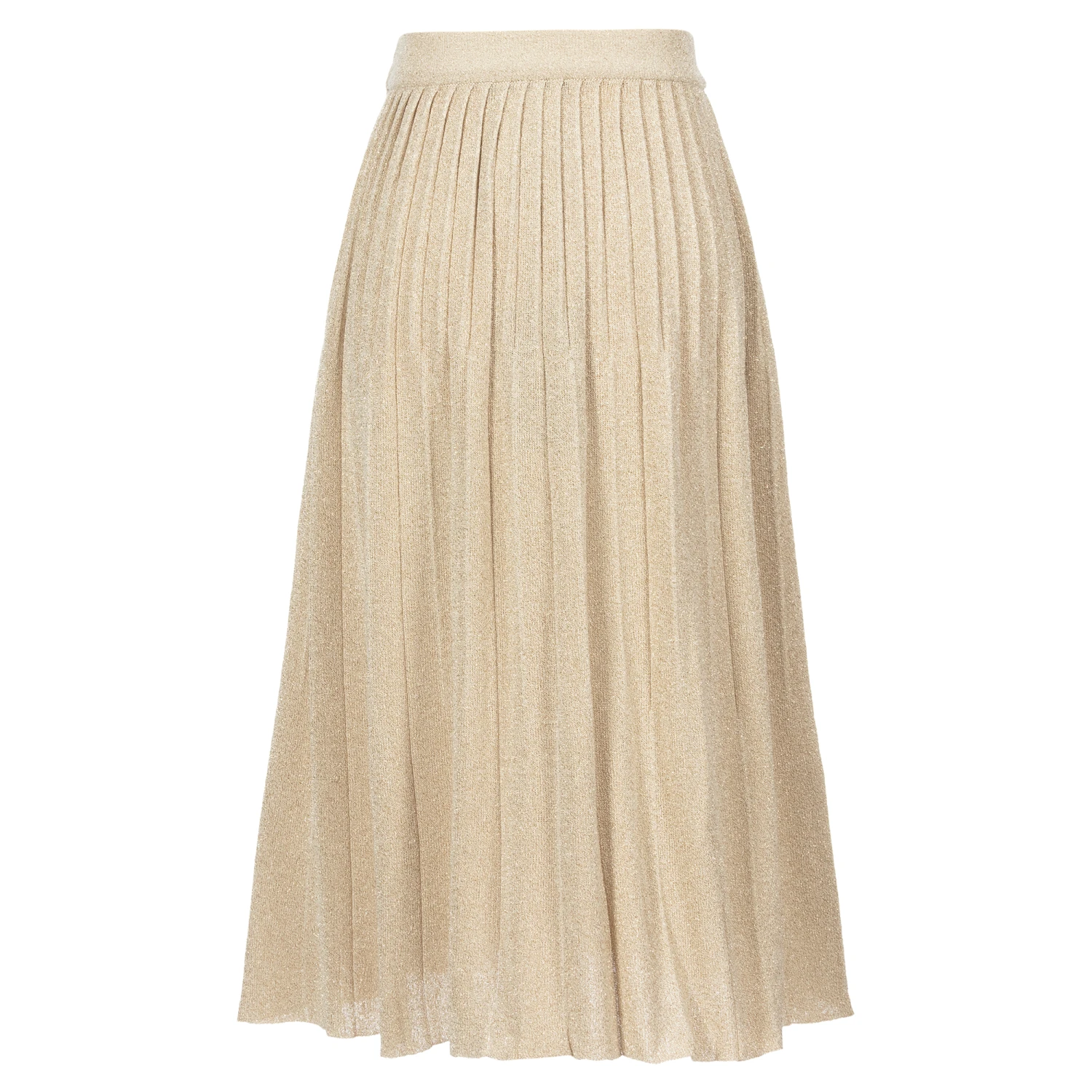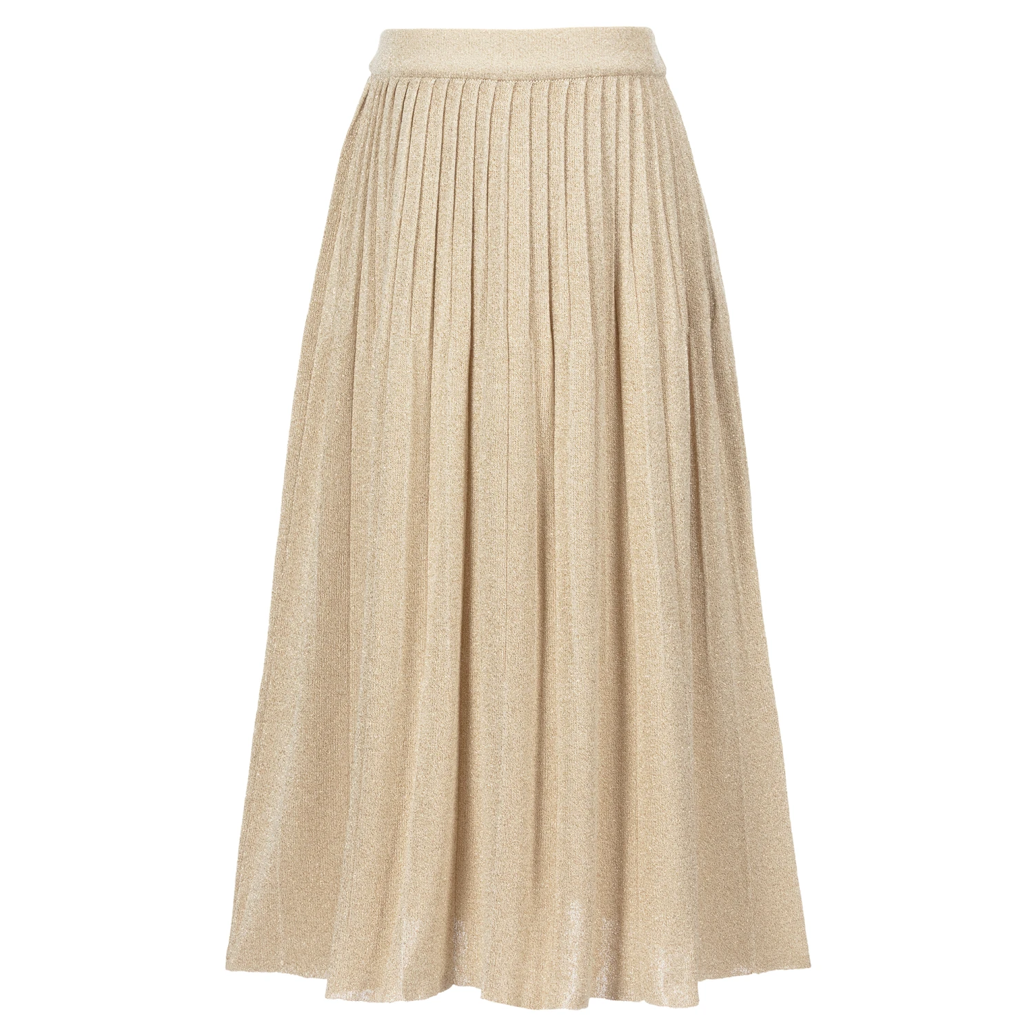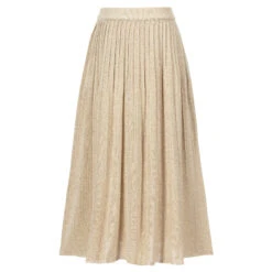 Girls pleated maxi skirt by Emporio Armani, finely knitted in gold lurex. Stylish and comfortable, it has an elasticated waistband and a raw hem.