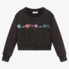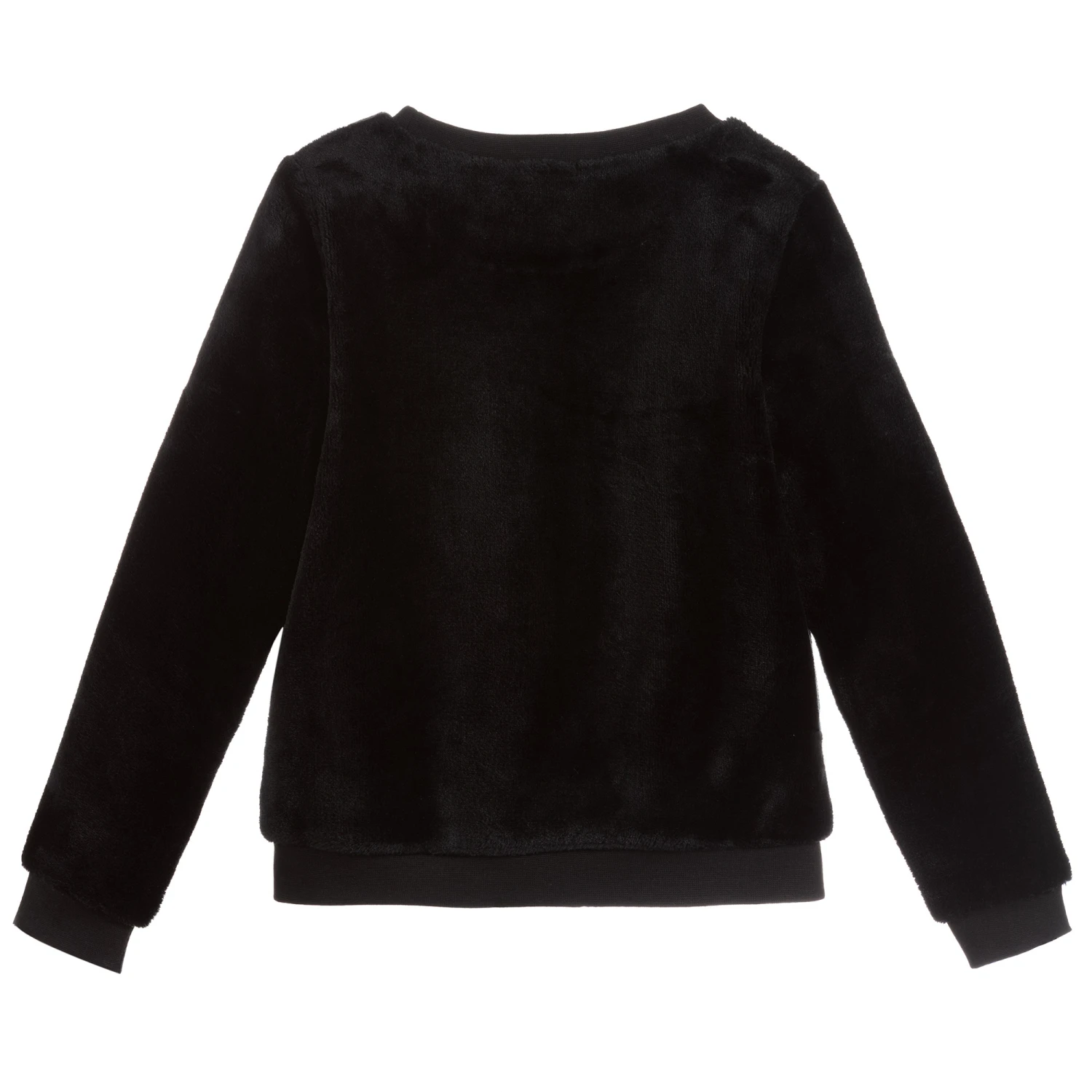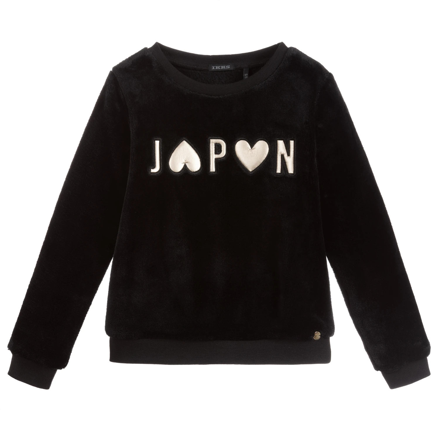 Black sweatshirt for girls by IKKS, with a padded gold ‘Japan’ appliqué on the front. Made in soft polyester faux fur, it has a warm fleecy inside.