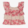 Mint blue blouse for girls from IKKS, made and lined in super-soft modal. The fabric is enhanced by a lovely tile pattern in blue and pale pink, and detailed with gorgeous white embroidery. It has an easy-to-fasten keyhole button on the back, relaxed-fit shape and sweet capped sleeves.