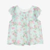 An ivory and navy blue blouse for girls by Jessie and James London. It has a smart double curved check collar with pretty ties on the front, navy blue trim on the cuffs and a zip fastening on the back. The body is lined in soft, lightweight cotton.