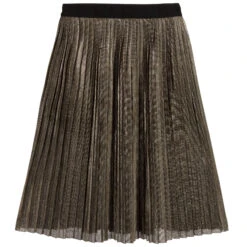 Gold pleated midi-skirt for girls by KARL LAGERFELD KIDS, made in lightweight polyester. Fully lined, it has an elasticated, black logo jacquard waistband.