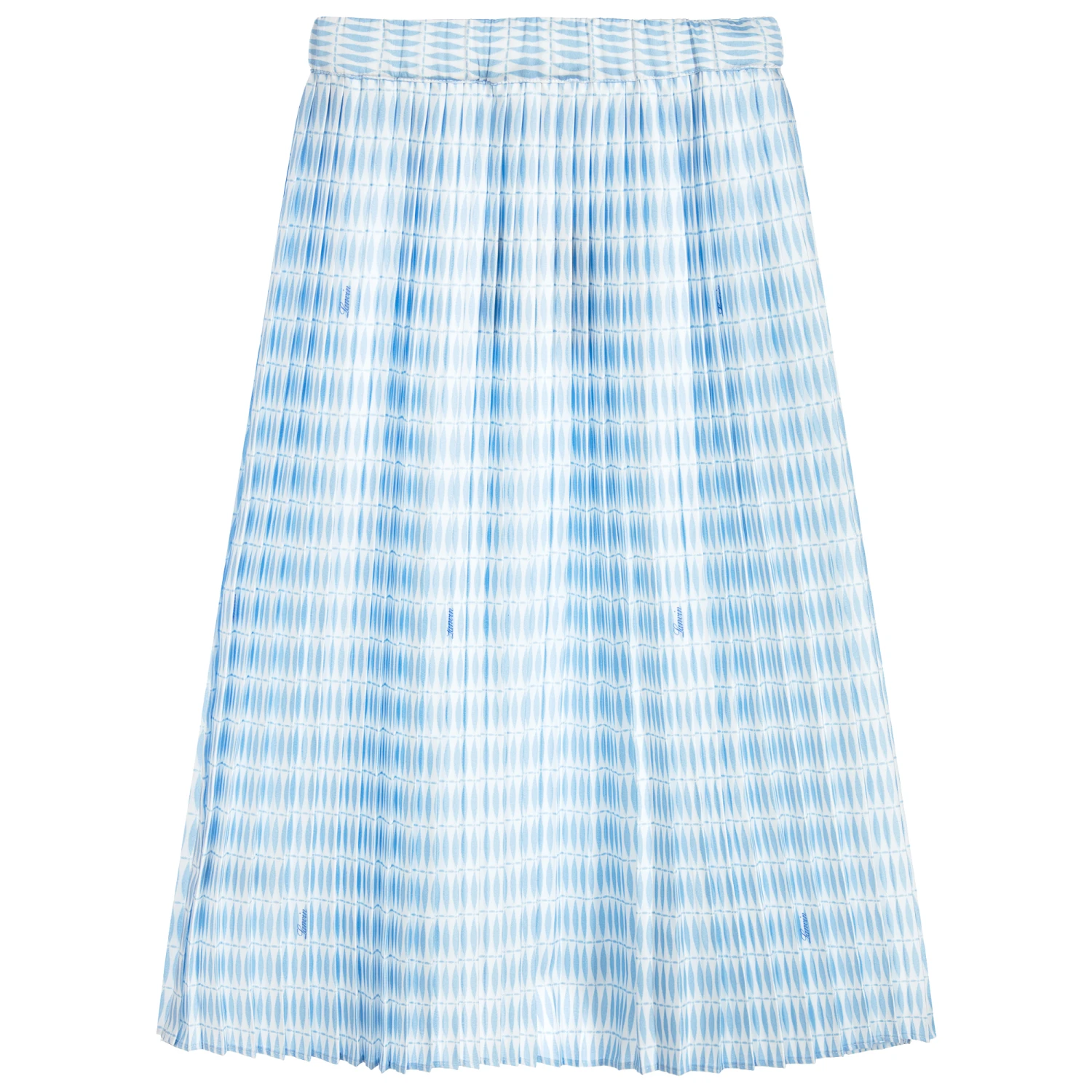 By luxury French brand, Lanvin, this long-length pleated skirt is a grown-up design for girls. Its waistband is elasticated and the crêpe de chine fabric has concertina pleats, with a geometric graphic print.