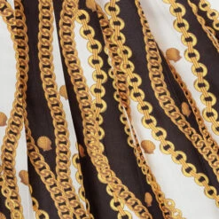 Girls luxurious gold, black and white ankle-length skirt from Loredana, with a chain and shell pattern. It is made in luxurious satin, with an elasticated waistband. There is a super soft, above the knee viscose jersey lining.