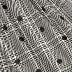 Black and ivory check skirt for girls by Mayoral, made in a soft, viscose blend, with a lightweight lining. It has a sparkly black dot pattern and a faux leather elasticated waistband.
