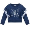 Pale yellow crew neck sweatshirt for girls, by Danish brand Molo. Made in soft organic cotton jersey, it has a vibrant orange blossom print on the front for a nature-inspired look, and stretchy ribbed trims.