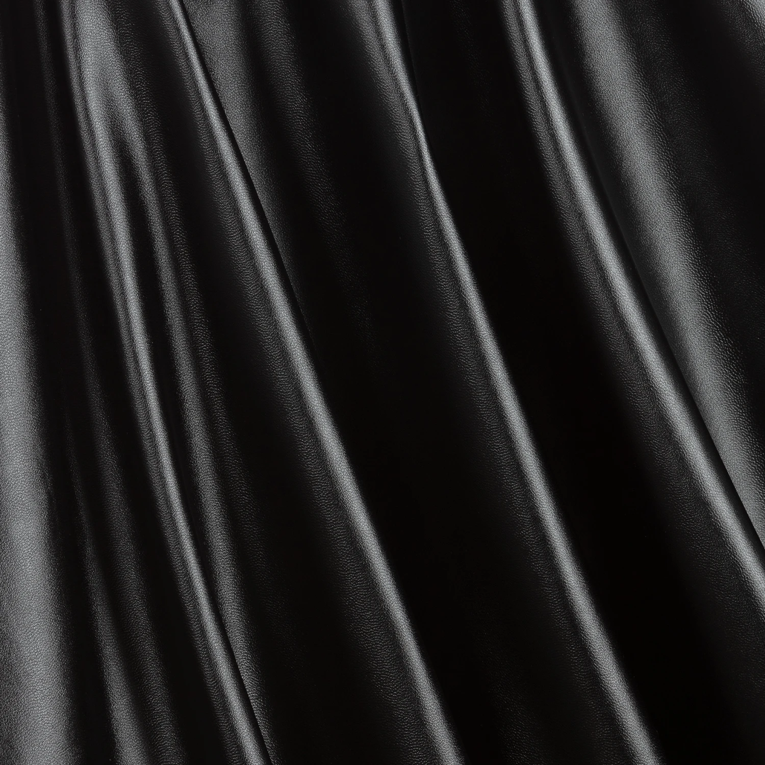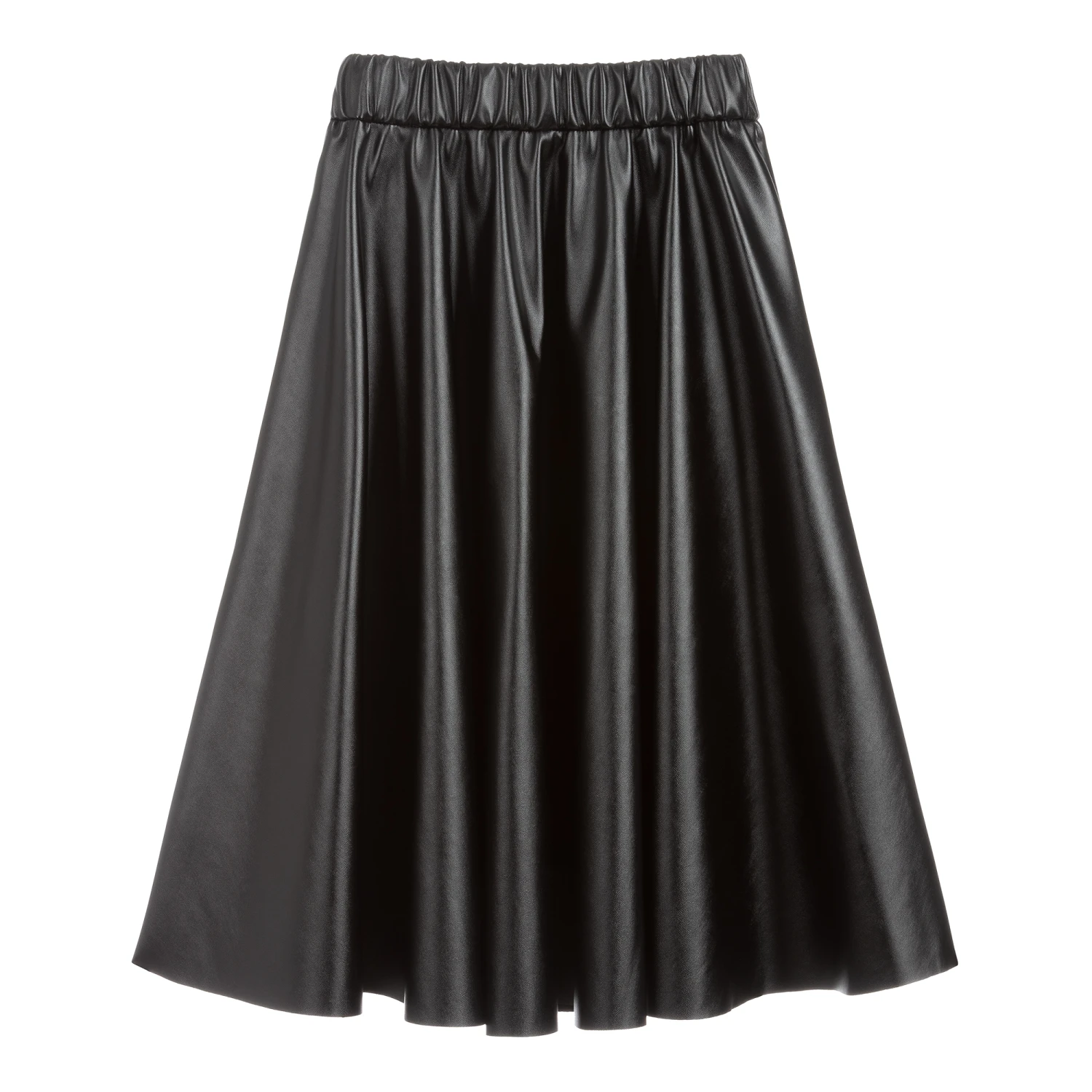 Black faux leather skirt for girls by Monnalisa, with a red appliqué star and elasticated waist.