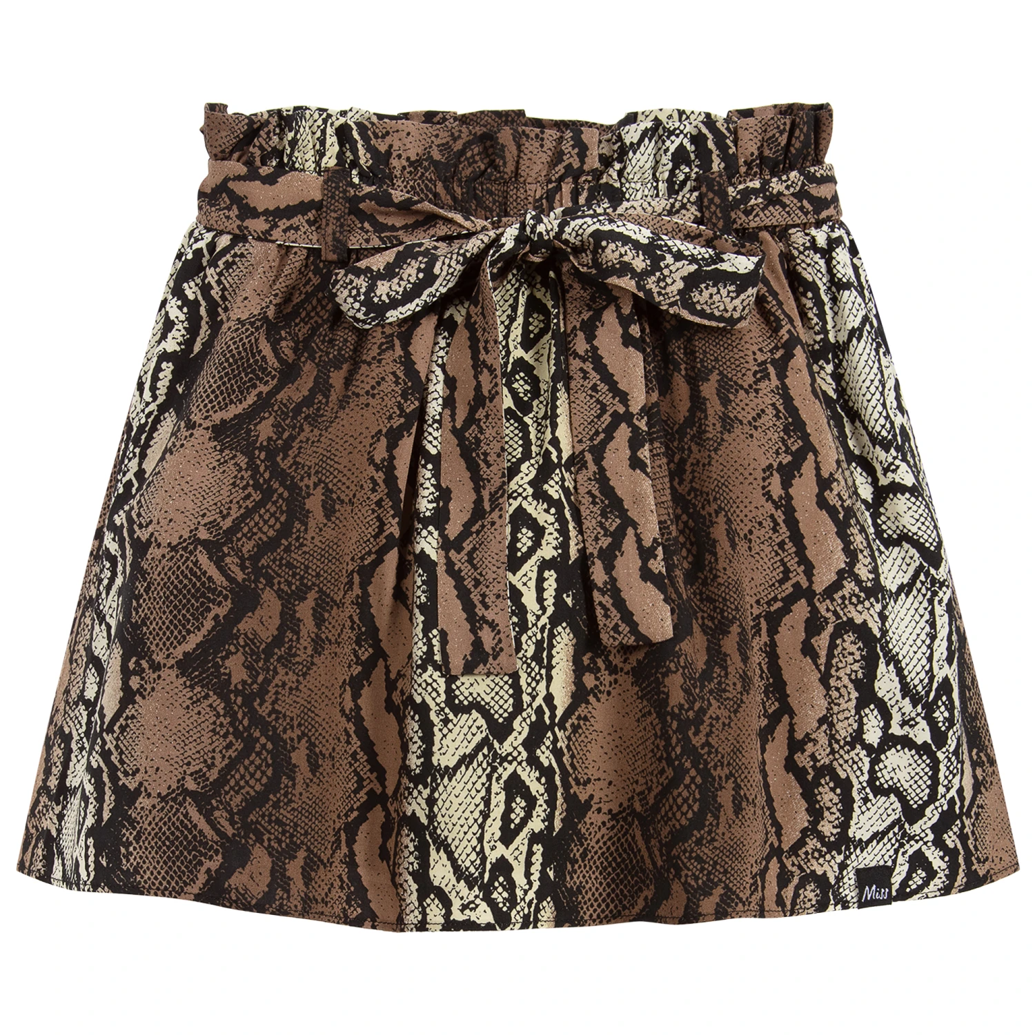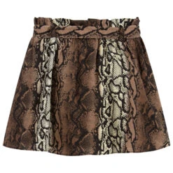 Designed for girls by NIK&NIK, a black and brown snakeskin print skirt, with a detachable tie belt. Made from soft lightweight viscose, it is fully lined and has a stretchy elasticated waistband for comfort.