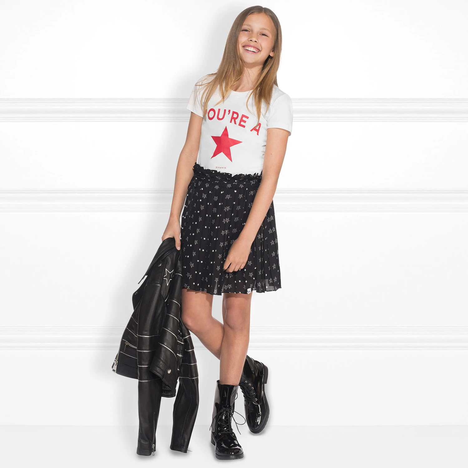 Girls black pleated skirt with a white star print by NIK&NIK, in collaboration with BeautyNezz. Made in lightweight chiffon, with a soft viscose lining, it has an elasticated waistband for a comfortable fit.
