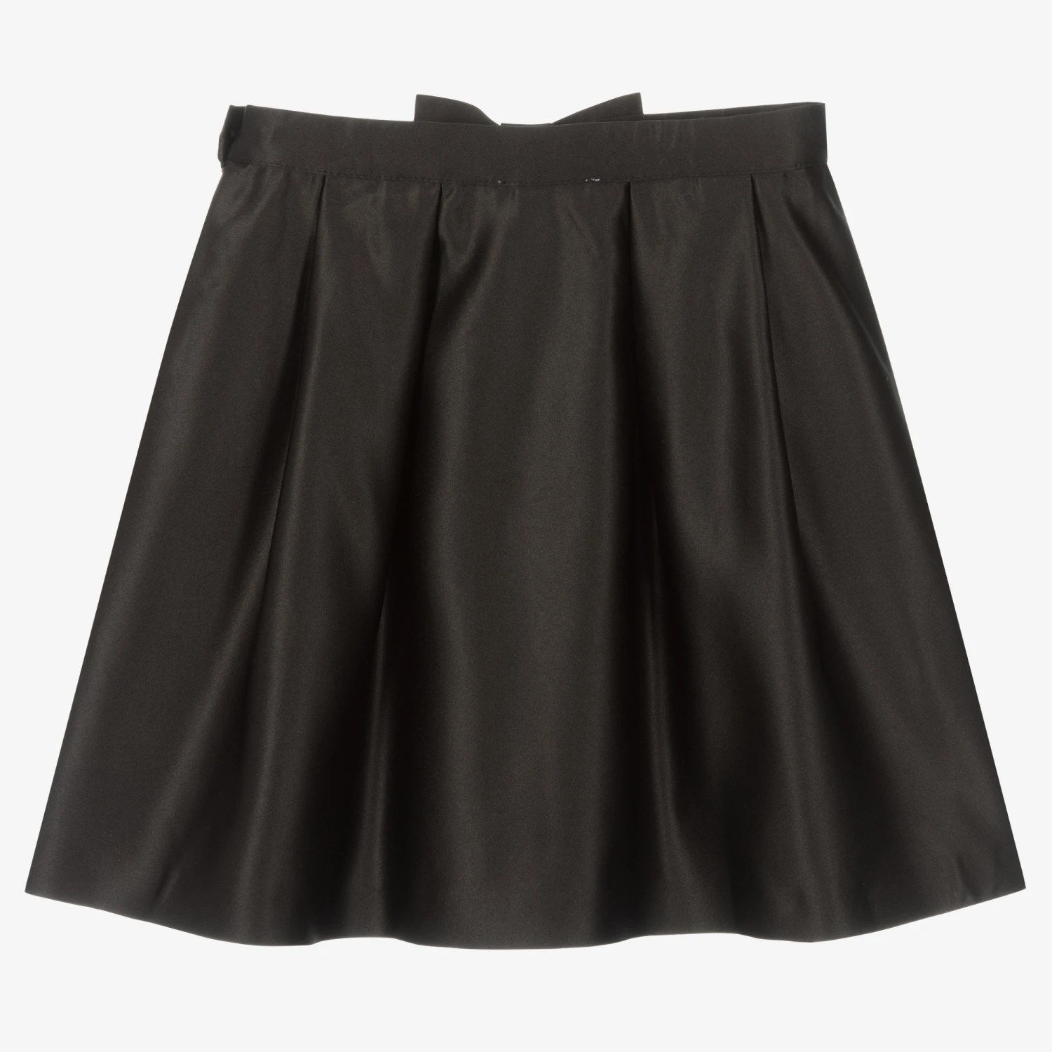 Black special occasion skirt for girls by classic Portuguese brand Patachou, exclusive to Childrensalon. Made in sumptuous satin, it has a fixed bow on the waistband, which is adjustable for a comfortable fit. Box-pleated, it is fully lined for comfort and fastens on one side with a neat, concealed zip and a satin-covered button.