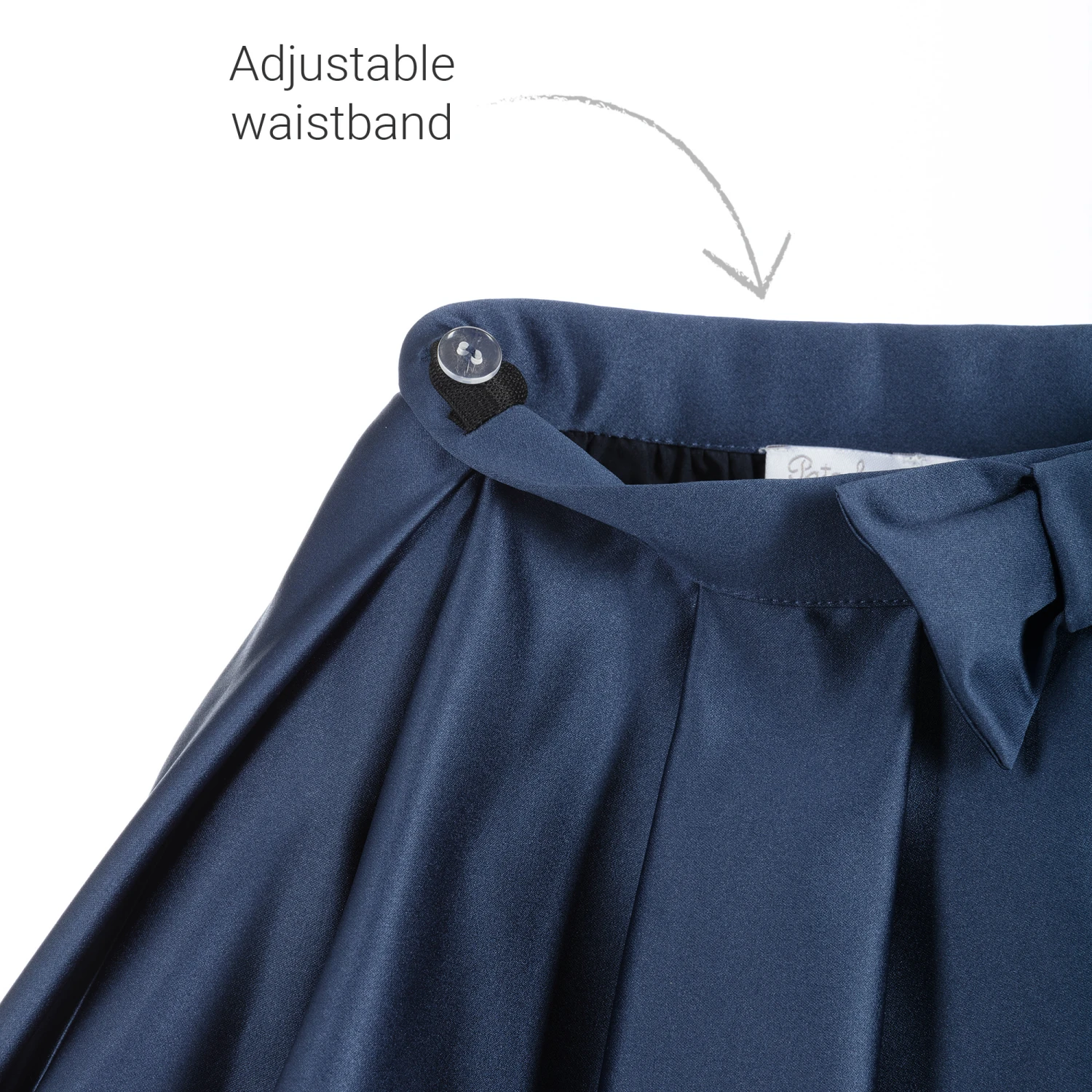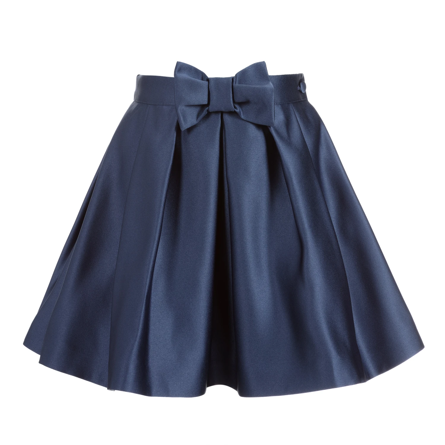 Beautiful navy blue satin skirt by Patachou, exclusive to Childrensalon. It has a charming bow on the front and a comfortable cotton lining trimmed with tulle for a full silhouette.