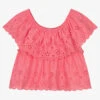 Gorgeous white blouse for girls by Phi Clothing, patterned with gorgeous pink and yellow peonies. The high neckline has a pleated ruffle trim, with a romantic oversized bow and dramatic puffed sleeves. It fastens with mother-of-pearl button fastenings on the back for easy, stylish dressing.