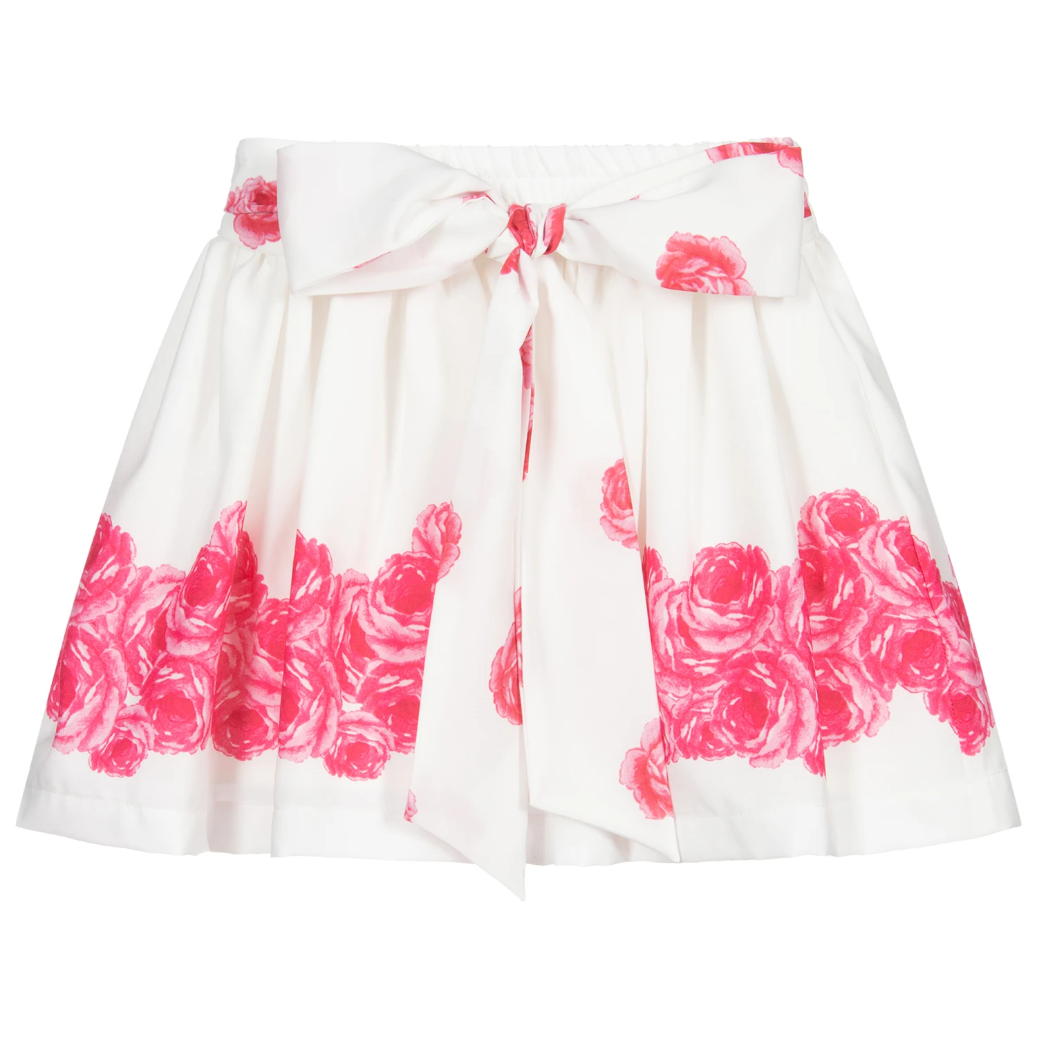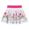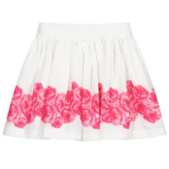 White chiffon skirt by Piccola Speranza, with a lovely pink rose print. Soft and lightweight, there is a sash that ties in a bow on the front. It is fully lined in smooth cotton and has an elasticated waist.