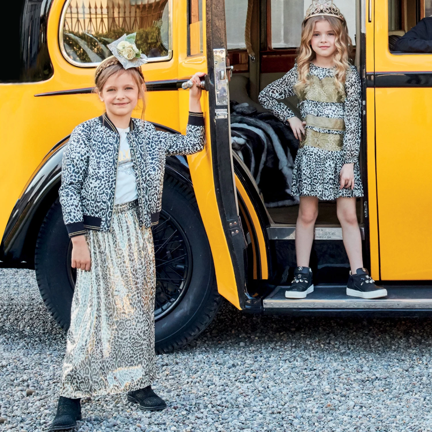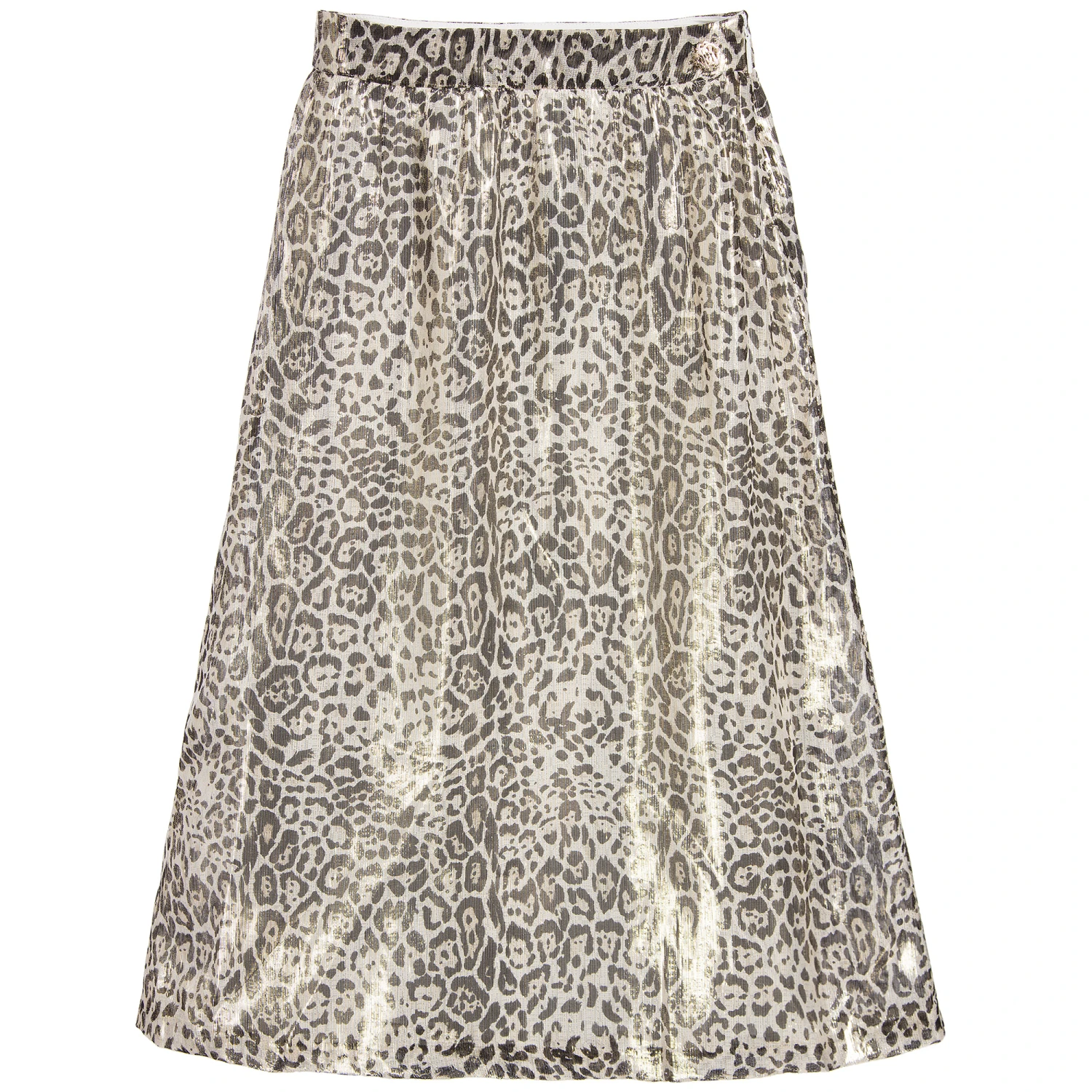 Every fashionable girl needs some Roberto Cavalli in her wardrobe. This luxurious, leopard print long skirt, will bring a touch of feline flair to her outfits. The iridescent overlay is made in a lightweight silk lurex blend, with a smooth viscose lining. Full length, there is a side zip to fasten and an ‘RC’ logo badge stitched at the side.