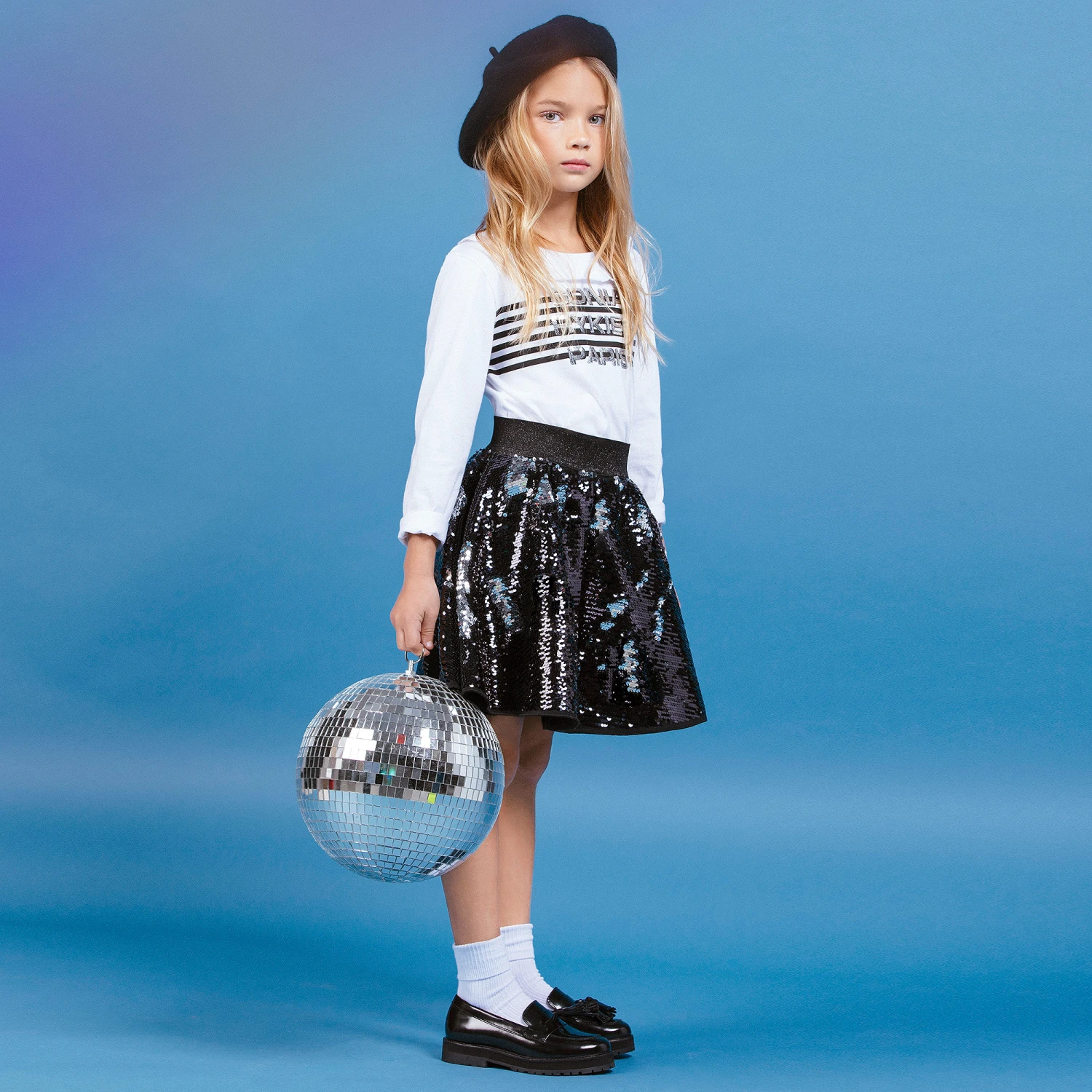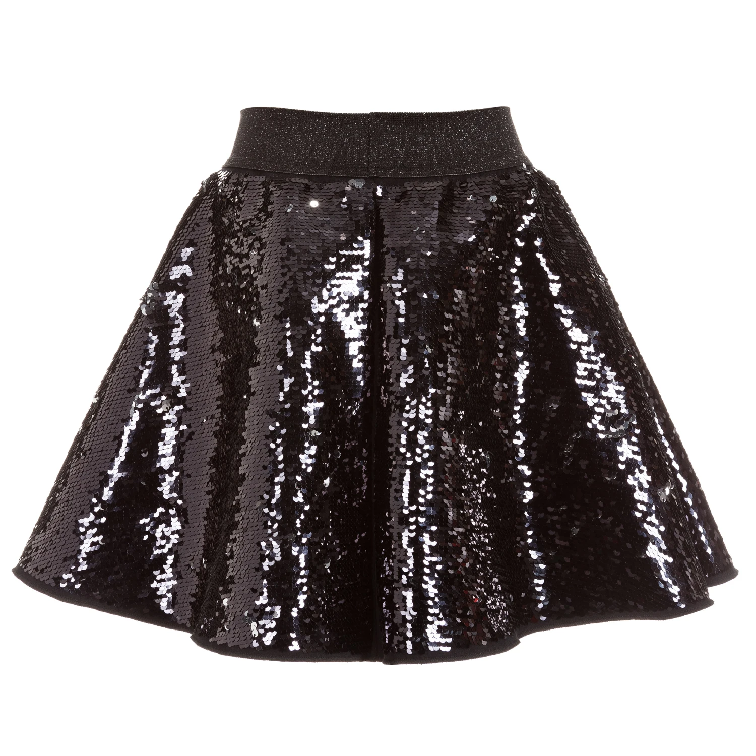 Girls silver and black reversible sequins skirt by Sonia Rykiel Paris, with a soft cotton jersey lining and a glittery, elasticated waistband.