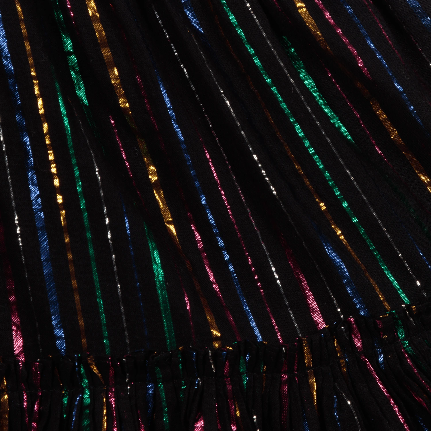 Black skirt for girls, by Stella McCartney Kids. Made from soft, lightweight cotton, it has a multi-coloured lurex stripe and a pretty ruffle hem.