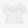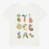 Red T-shirt for girls by British designer Stella McCartney Kids, made in comfortable cotton jersey. It has a 3D smiling, see-through badge on the front with sequins inside, and edged with the brand’s logo. The sleeves have fixed turn-ups.