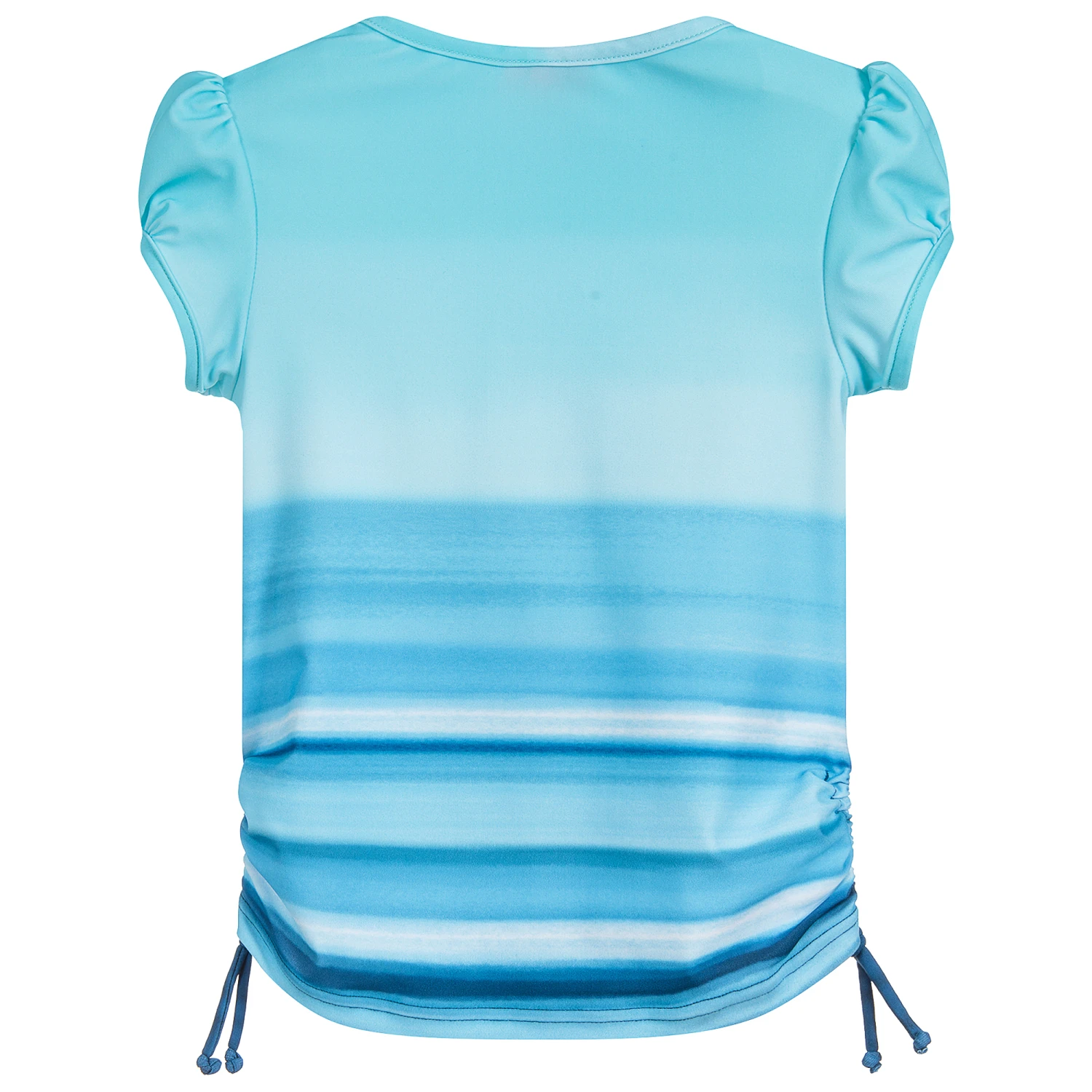 Girls blue printed top by Sunuva, made in stretchy polyester with UPF 50+ protection.