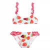 Aqua blue bikini for girls by British swimwear brand Sunuva, in a one-shoulder design. Made in soft, stretchy velour for stylish sun protection, it is fully lined in soft, recycled fabric.