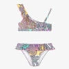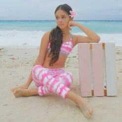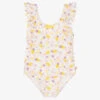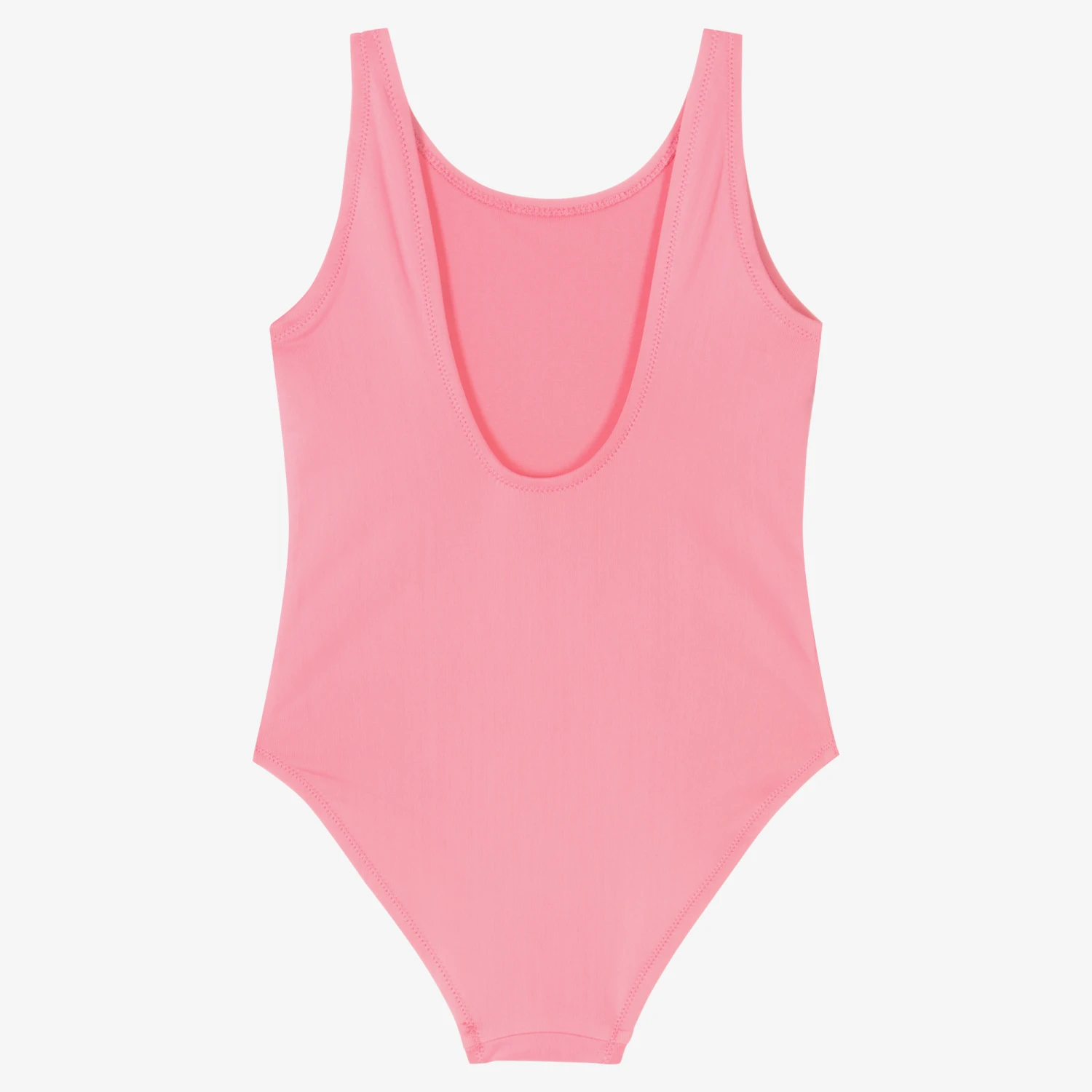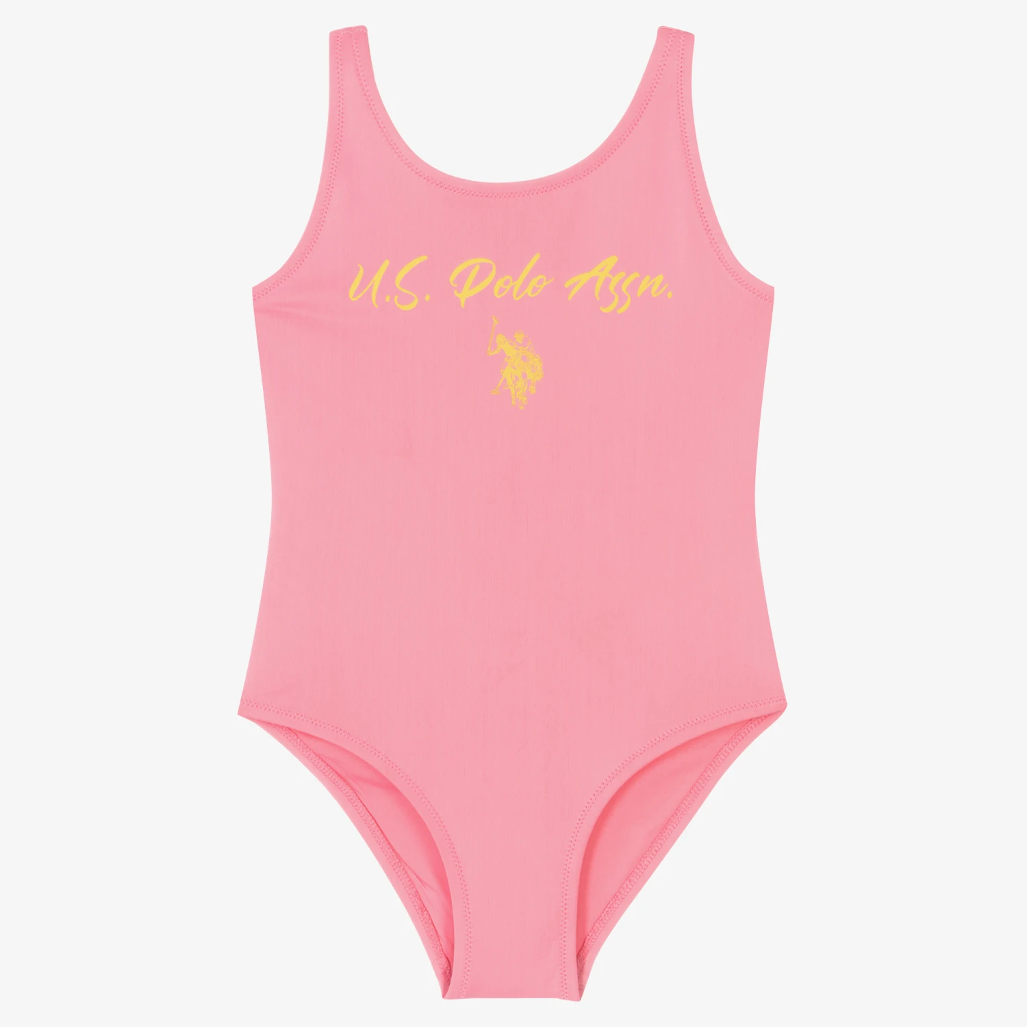 In a lovely shade of pink, this swimsuit for girls is by U.S. Polo Assn.. Silky soft and fully lined, it has the brand’s double horseman logo printed across the front in yellow.