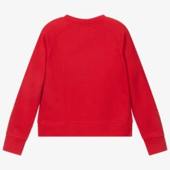Mini-me red sweatshirt for girls by Zadig & Voltaire Kids, made in mid-weight cotton jersey. It has a white logo print on the front, with colourful star and floral embroidery.